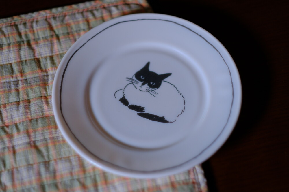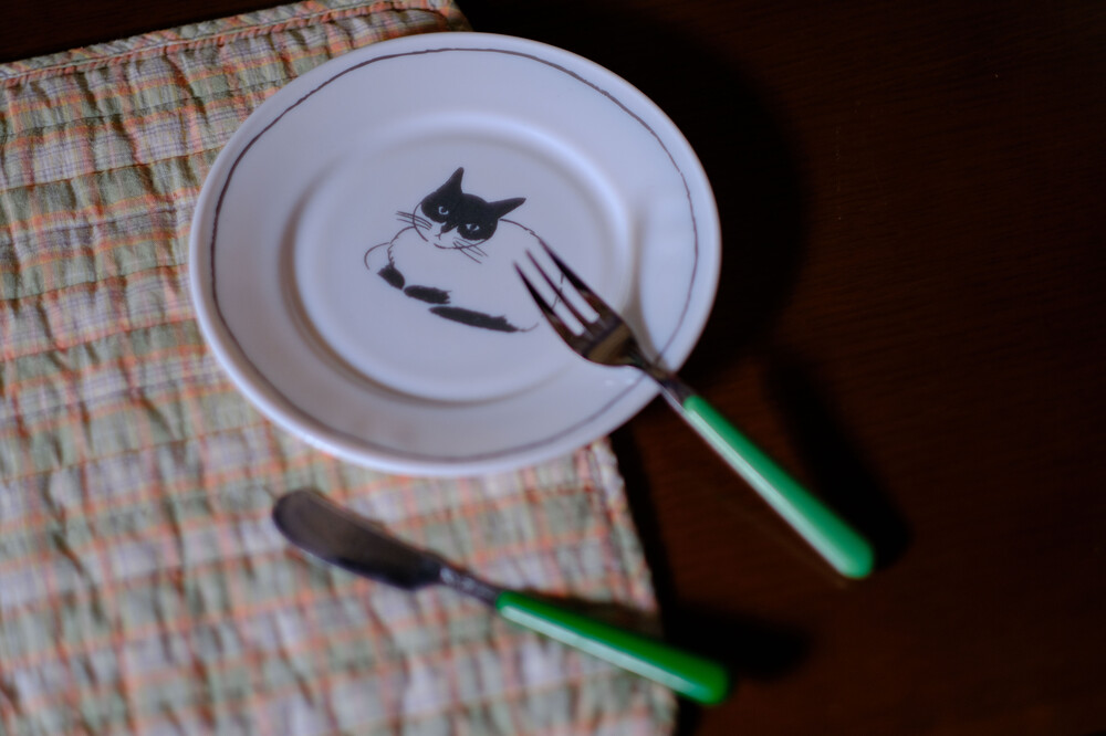 일본의 그래픽디자이너가 그린 일러스트레이션을 담은 고양이 그래픽의 접시입니다. 이것은 음식을 담기보다 진열되는 접시로서 흑백의 카툰 그래픽으로 주방의 분위기를 위트있게 만들어 줍니다. 일명 식빵자세로 앉아있는 샤무트 고양이의 표루퉁한 표정을 바라보고 있으면 '어쩌라고' 하는 마음가짐으로 음식을 자분자분 요리할 수 있게 됩니다. 우리는 그림을 집에 두고 싶을때 액자에 걸린 틀에 박힌 방식을 벗어나서, 크고작은 엽서나 책 표지 뿐 아니라 접시, 연필, 틴케이스, 옛날 성냥통 옛날 우표 등 다채로운 매체에 그려진 그래픽과 타이포그래픽스의 피스들을 조화롭게 배치하여 집안의 분위기를 한껏 감성적으로 연출할 수 있다고 제안드리고 싶습니다.