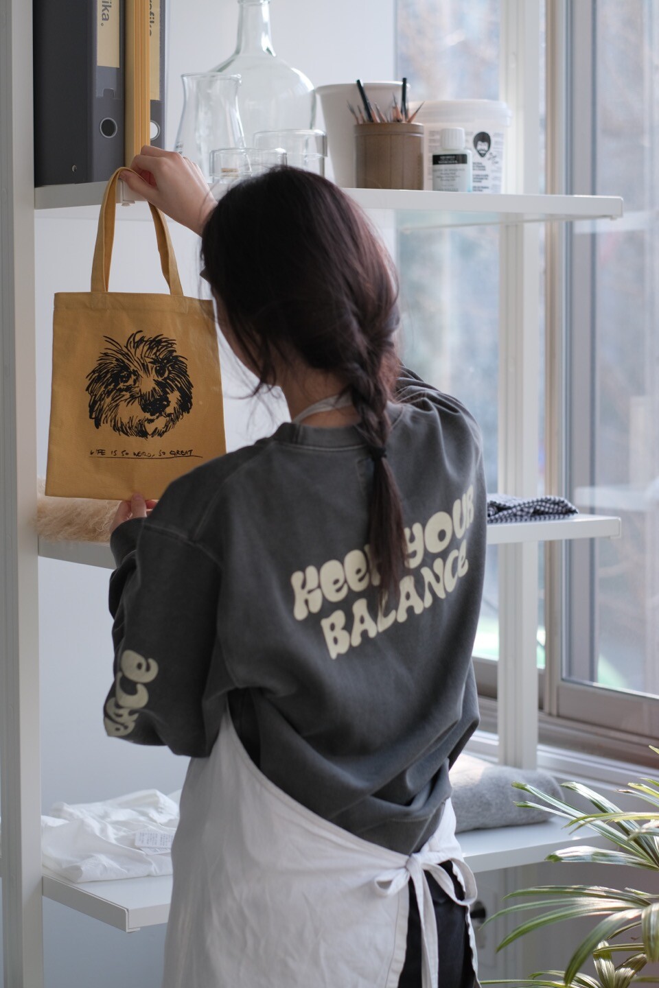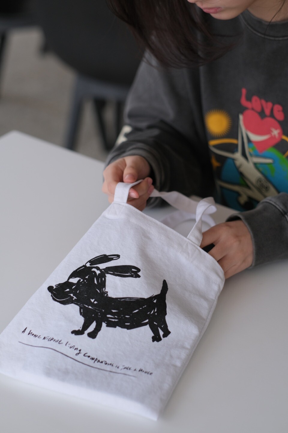 에코백들은 넉넉해서 시장가기 좋은 가방도 있고, 지갑과 림밤 딱 넣고 가는 귀염뽀짝큐티사이즈도 있지만, 기성 제품 말고 수작업으로 만들때의 장점은 '딱 요만한 크기가 좋지' 하는 사이즈로 만들 수 있기 때문입니다. 손에 들어도 예쁘고 어깨에 딱 매달리는 손잡이 간격으로, 간절기 얇은 겉옷까지 구겨 넣을 순 없어도 수첩과 필통, 지갑, 화장품 파우치까지 다 들어가지만 여전히 귀여운 사이즈입니다. 귀여운 얼굴은 도울뿐 !