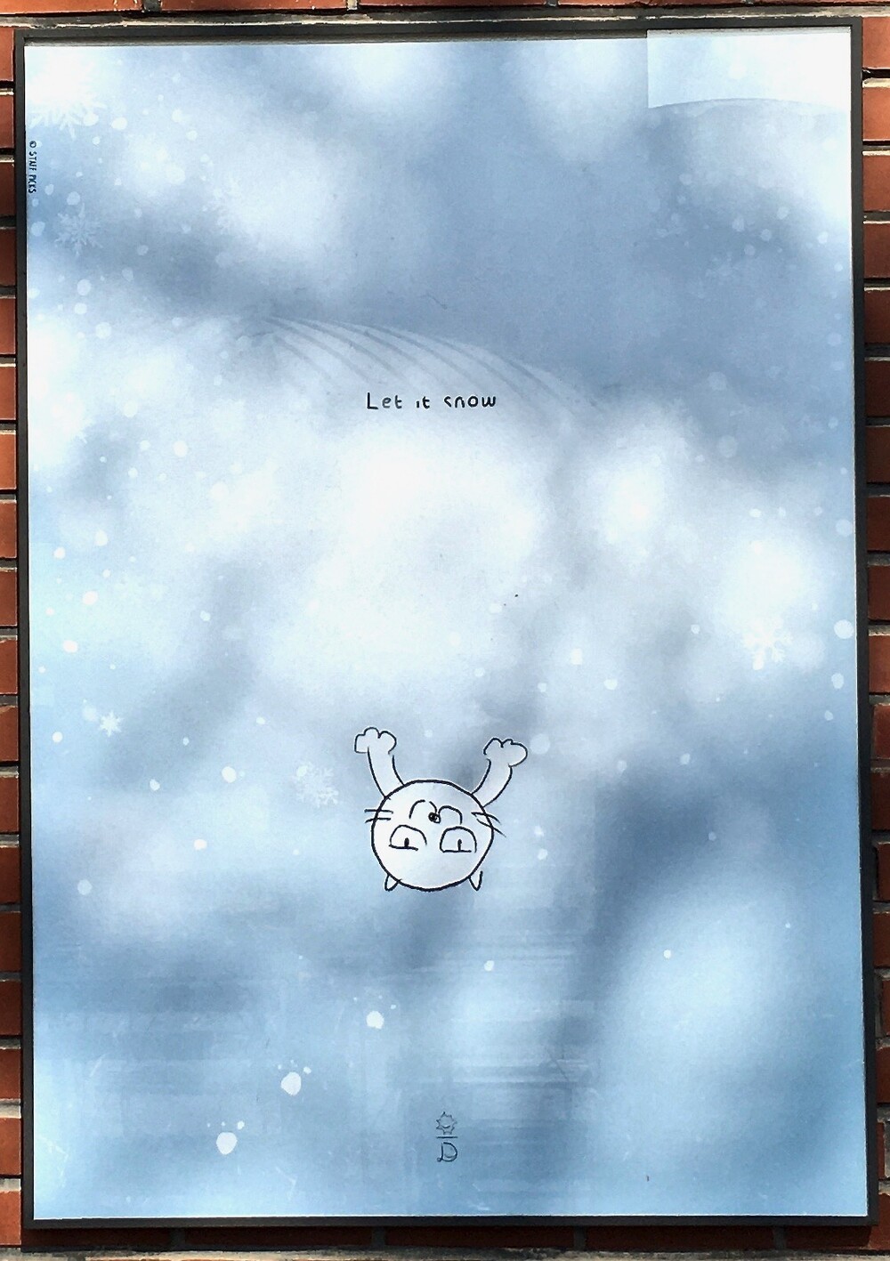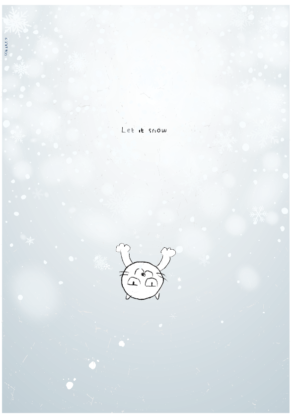 Description: 정원에 내린 눈 위에 가로새겨진 고양이 발자국을 통해, 간밤에 혼자 첫 눈을 맞이하던 순간을 상상해 보았습니다.