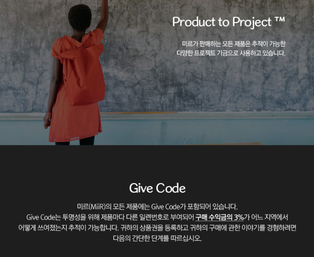 미르는 판매수익금의 일부를 기부하고 있으며 모든 구매자의 기부금이 어디에 어떻게 쓰이고 있는지 투명하게 공개합니다.