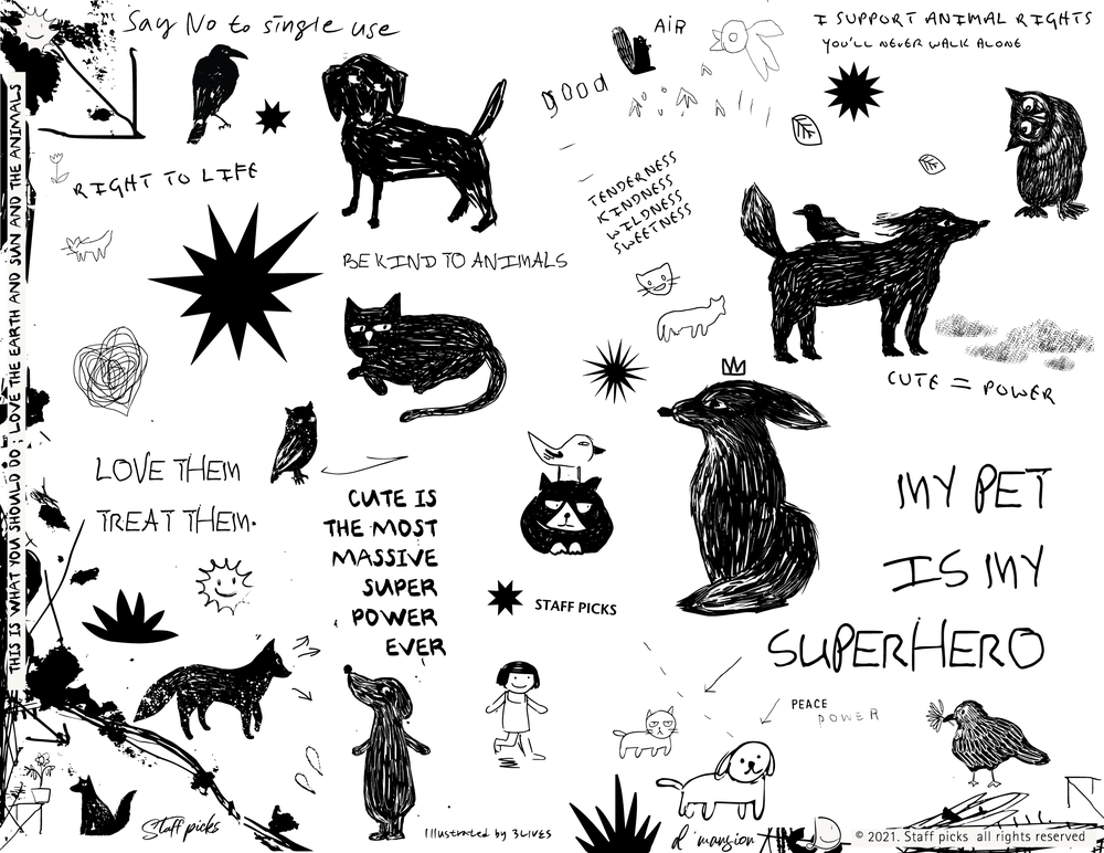 The Wild wildlife와 My pet is my superhero를 함께 믹스한 그래픽입니다.
