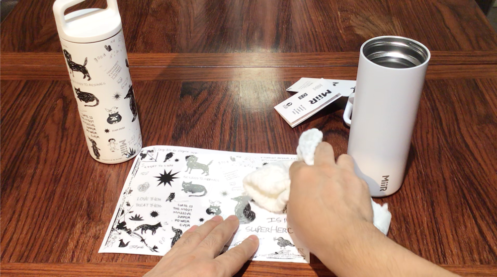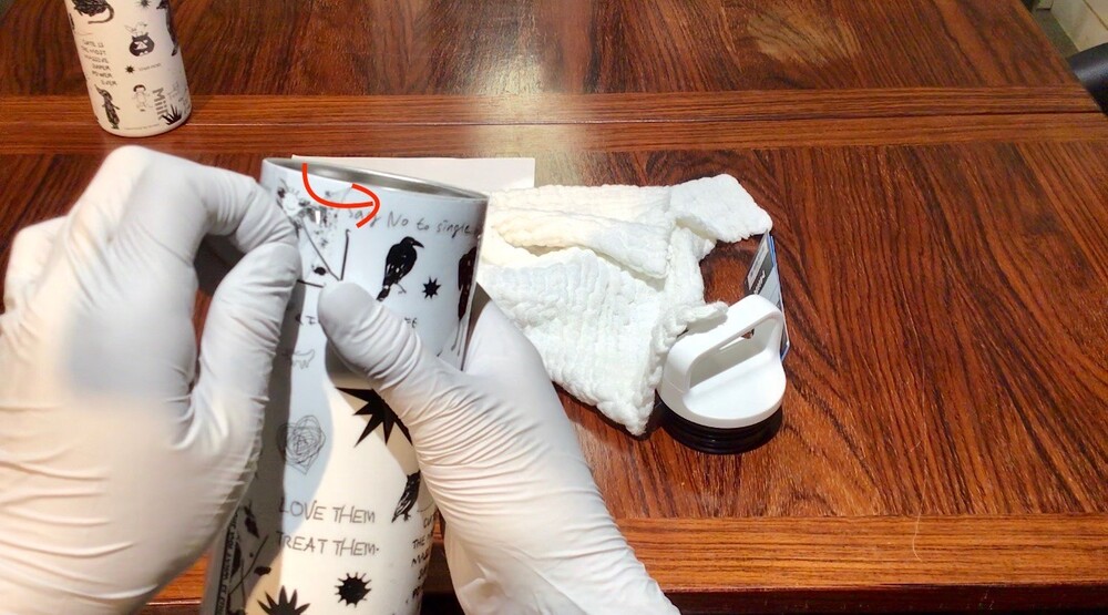 이제는 데칼이 완전히 텀블러에 안착할 수 있도록 아주 강한 힘으로 꾹꾹 정성을 들여 눌러주세요