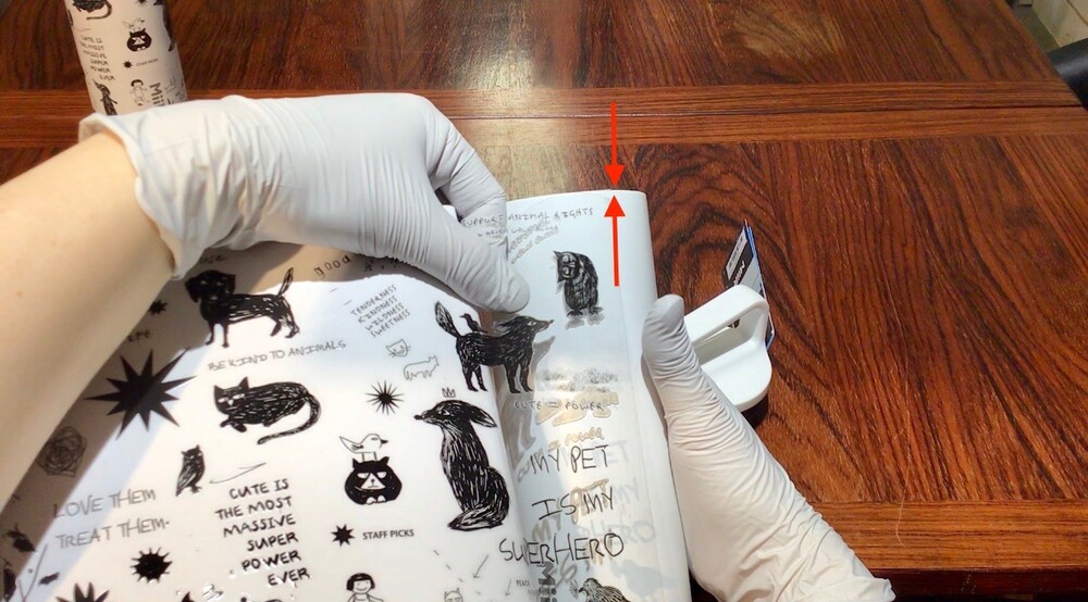 그림들이 전면의 투명비닐에 달라붙어 나오는지 확인하면서 전체의 일부분만 바탕 종이에서 분리합니다. 전체를 한번에 뜯으면 붙이기 어렵습니다.