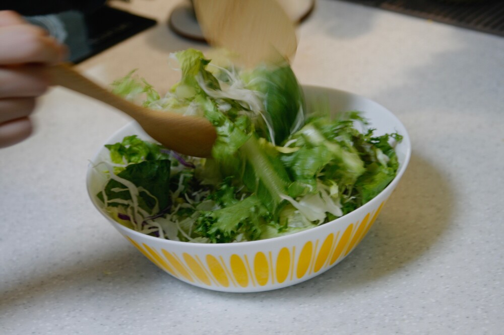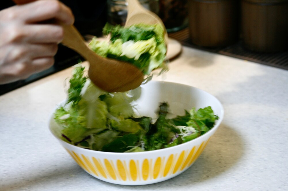 재료와 궁합이 맞는 발사믹이나 셰리와인 비네거로 드레싱을 뿌린 후 깨달았습니다. 샐러드를 완성시킬 서버스푼이 필요하다는 것을!